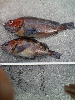 しばらくして、もう1本の竿の餌付け替えようとあげてみたら、クロガシラが掛かってました。