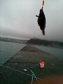 その後、この日の釣果がアイナメだけであった事が不完全燃焼だったので、石原裕次郎記念館近くにある南防波堤で外側のへチをブラーで探りガヤを釣りました。
