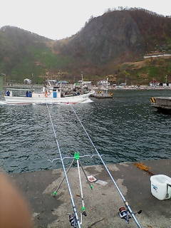 漁港の出口付近(船の通路付近)でカレイとホッケが釣れるそうです。港の中にトド防止ネット?が張ってありました。