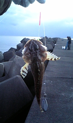 その後、防波堤の先っぽ迄行き、穴ホジリしたり投げてまいたりしつこくトライしてみたがサッパリで、チビドンコ2匹しか釣れなかった。