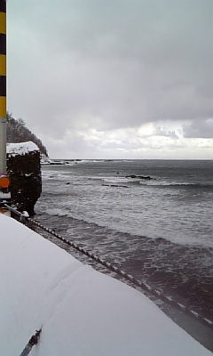美国の辺りは波が高く、漁港は雪捨て場になっていた。