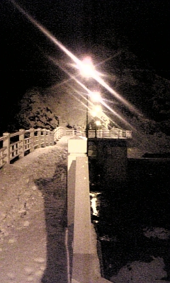 弁天島に渡る茂岩弁天橋、ライトアップされてる。