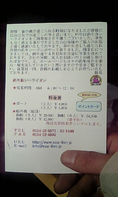 お昼頃、郵便受けをみたら小樽の釣り船シーライオンからハガキが届いていた。
