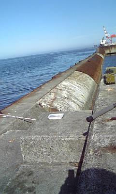 室蘭 崎守漁港前 午後9時から、投げ×3本で釣りはじめたけど、11時30分現在、只の1度もアタリがない。今はド干潮の塩止まり。