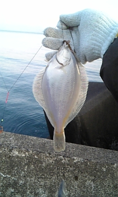 防波堤から外海に2本投げて、日没前に辛うじてマガレイ(23cm)1匹釣れた。