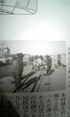 釣り新(10P)苫小牧東港の記事写真、群衆の中に鳶助親分(いい人で30匹以上)発見!。