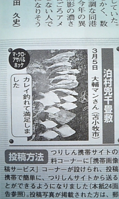 メール投稿欄(3P)、久しぶりに釣った魚の写真載せてもらえた。
