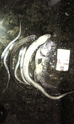 夜明け近く迄、話しをしながら竿先眺めて、小ハモ1匹追加。