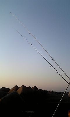 自分、防波堤ではあまりに短い時間しか投げ釣りしてなかったので、5時半だと船あげ場の近くでワーム投げてました。帰りに声かけ、すいません。