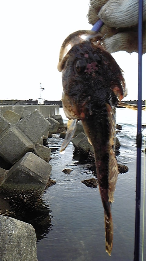 港奥の船溜まりやテトラ周りをワームで探ってみたけど、小さいイソカジカ1匹しか釣れなかった・・・