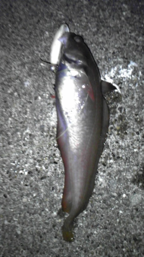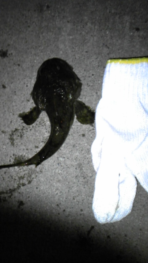 その後、ルアー竿持って、漁港の船揚げ場付近をワームで探り、チビカジカ。