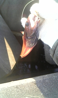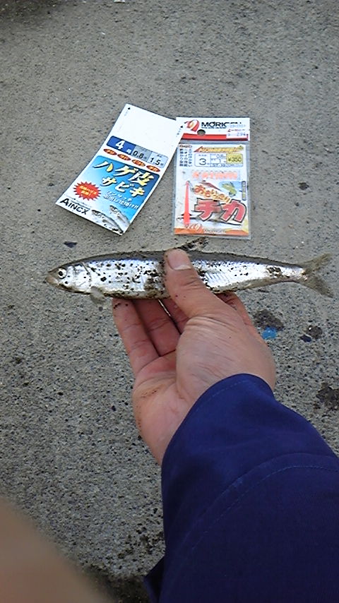暫くして、岸壁に船が入るので避けてくださいと言われ、撤収準備していると、自分の竿でもチカ釣れた。