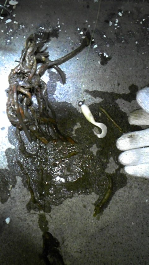 去年、よく鰍が居た辺りをワームで探ってたら、エラコ が釣れた。(引っ掛かった)