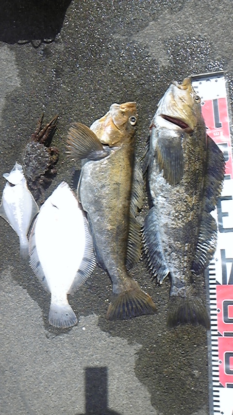 午前7時を過ぎた頃から、投げ竿にたまにアタリが出だして(船が通ったからかもしれない)クロガシラとアブラコ、クリガニ。