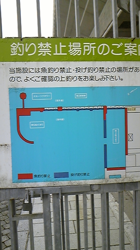 赤い部分は釣り禁止。