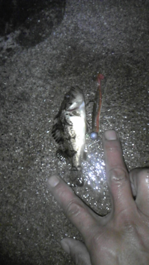 7月の大潮満潮、雨降りの夜中の1時に、此処で釣りした経験が無かったので、魚釣れるんだか?気になったので、試しに目標1匹で探り釣り。