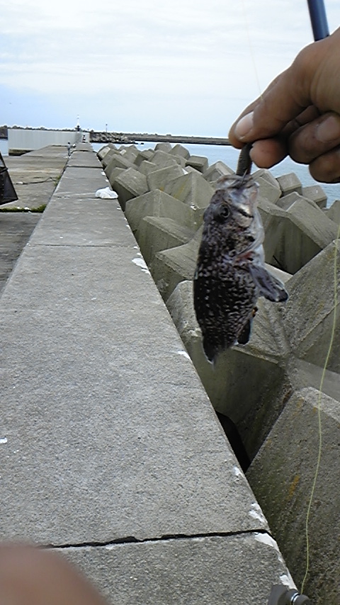 内側のヘチでは魚が釣れる気しなかった。外側はどうかな?とテトラの穴に落としてみると、小さいマゾイが釣れた。