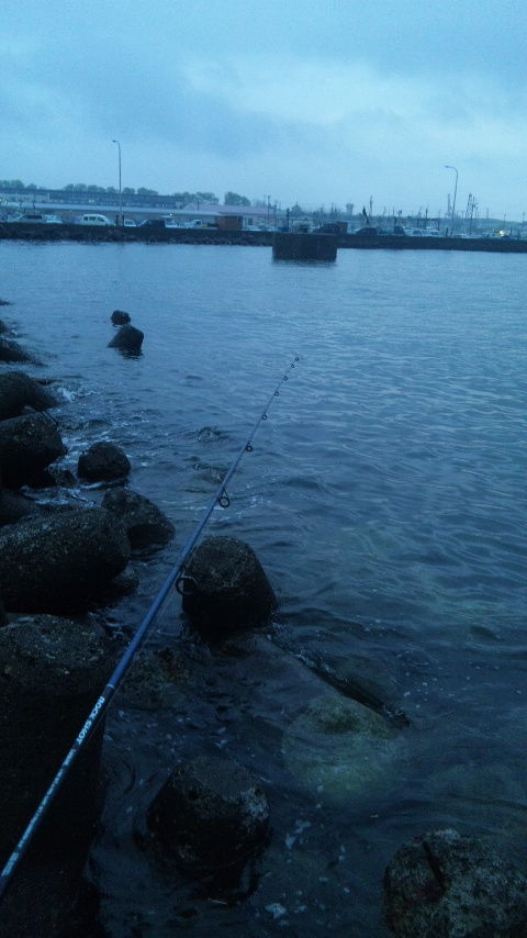 5月26日(土) 苫西 漁港区雨上がりの午前4時30分、ルアー竿とタモ持って釣り開始。