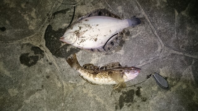 錘が流されたのかと思ったら、小さなクロガシラとアブラコがついていた。