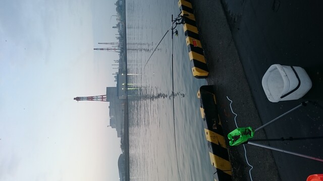 深夜、苫小牧西港 東埠頭 でサビキ竿2本出してみたけど、1時間くらい経った頃、船が来るからと港湾の方に車の窓を叩かれて撤収。