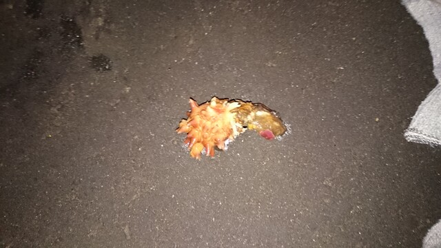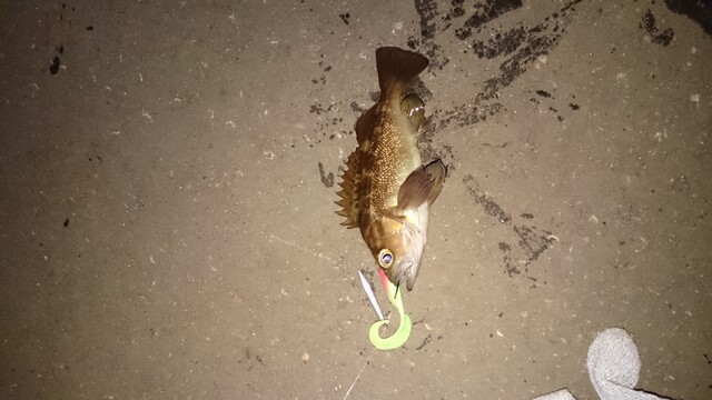 深夜、投げ釣りの後に、カジカ釣れないかと、漁港区でジグヘッドにワームをつけて探り釣り。