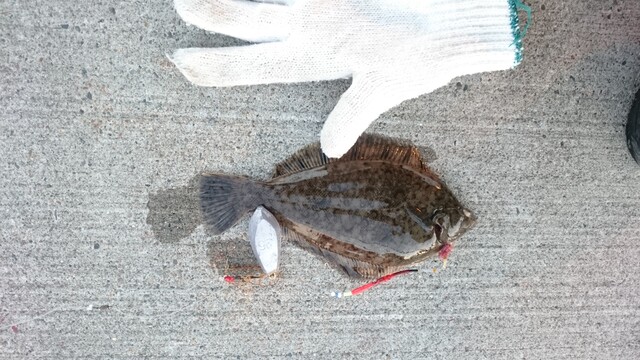 日没前にやっと1匹だけカレイが釣れました。