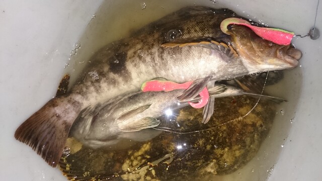 そのあと25〜28cmくらいのクロソイ3匹くらい釣れて、ワームがボロボロになったので仕掛け変えてみた。
