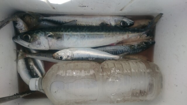 サバ、マイワシ、カタクチ?(小指くらいの小さいサイズばかり)、1匹だけ小さいニシン?ぽい魚。