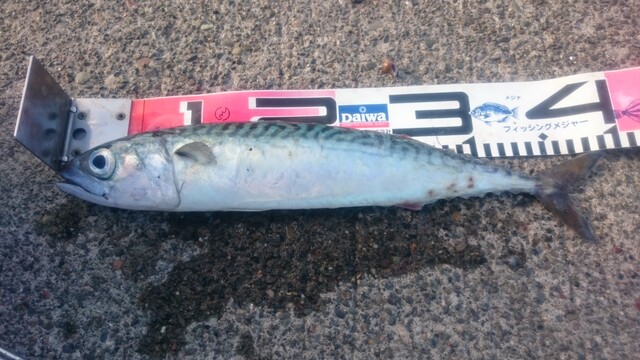 海面見てても全然魚が見えないけど一旦底まで落としてみたら、上に大きく一シャクリしたくらいの所でたまに小サバ、中サバ、マイワシが混ざって一緒に針に掛かる。