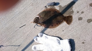 苫小牧西港 5月の朝 有眼側が奇形模様のクロガシラ釣れた